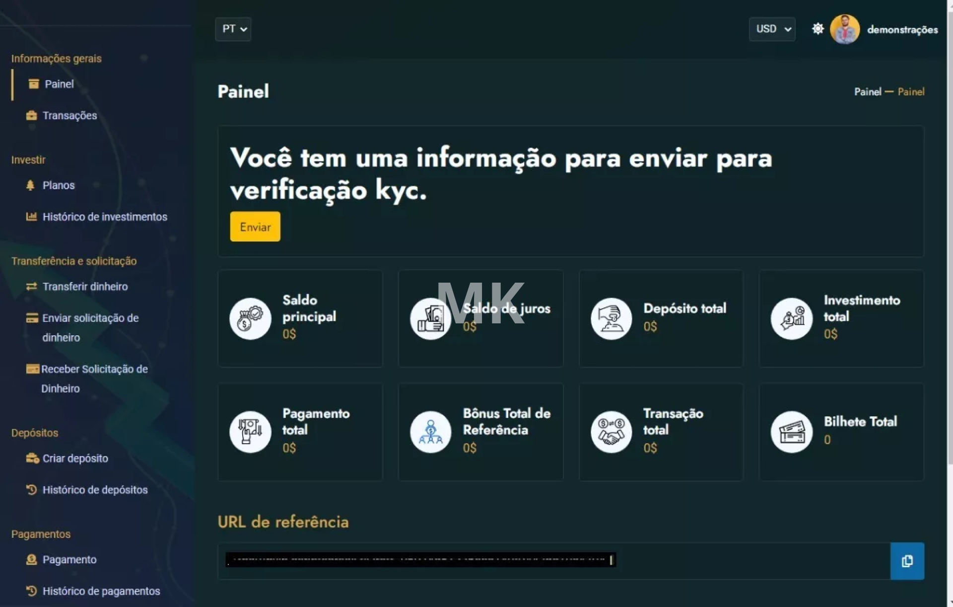 Os usuários podem se cadastrar gratuitamente e podem investir em diferentes planos. De acordo com o plano, os usuários receberão bônus do sistema após o investimento. vem com recursos como Saque, Depósito, Planos de Investimento, Bônus, Comissão de Referência, Transferência de Dinheiro, Solicitação de Transferência de Dinheiro, Enviar Solicitação de Dinheiro, 2FA, etc. Além disso, o Usuário obterá adequadamente todos os detalhes da transação. O administrador obterá lucro com a transferência de dinheiro, bem como com a porcentagem de retirada. Tudo é dinâmico e pode ser configurado no painel de administração. Possui um forte sistema de proteção de injeção de SQL que manterá esse sistema longe de hackers.