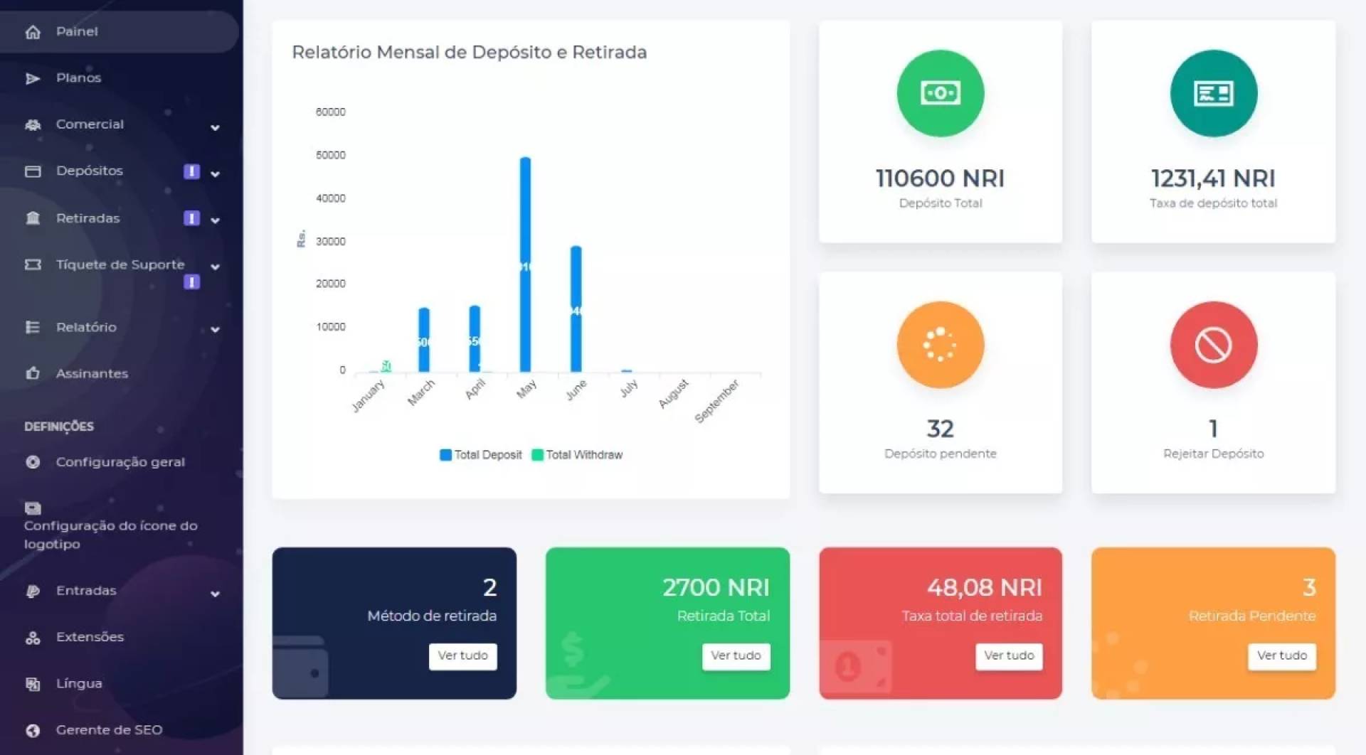 - Mais de 20 gateways de pagamento e mais de 250 moedas configuradas.