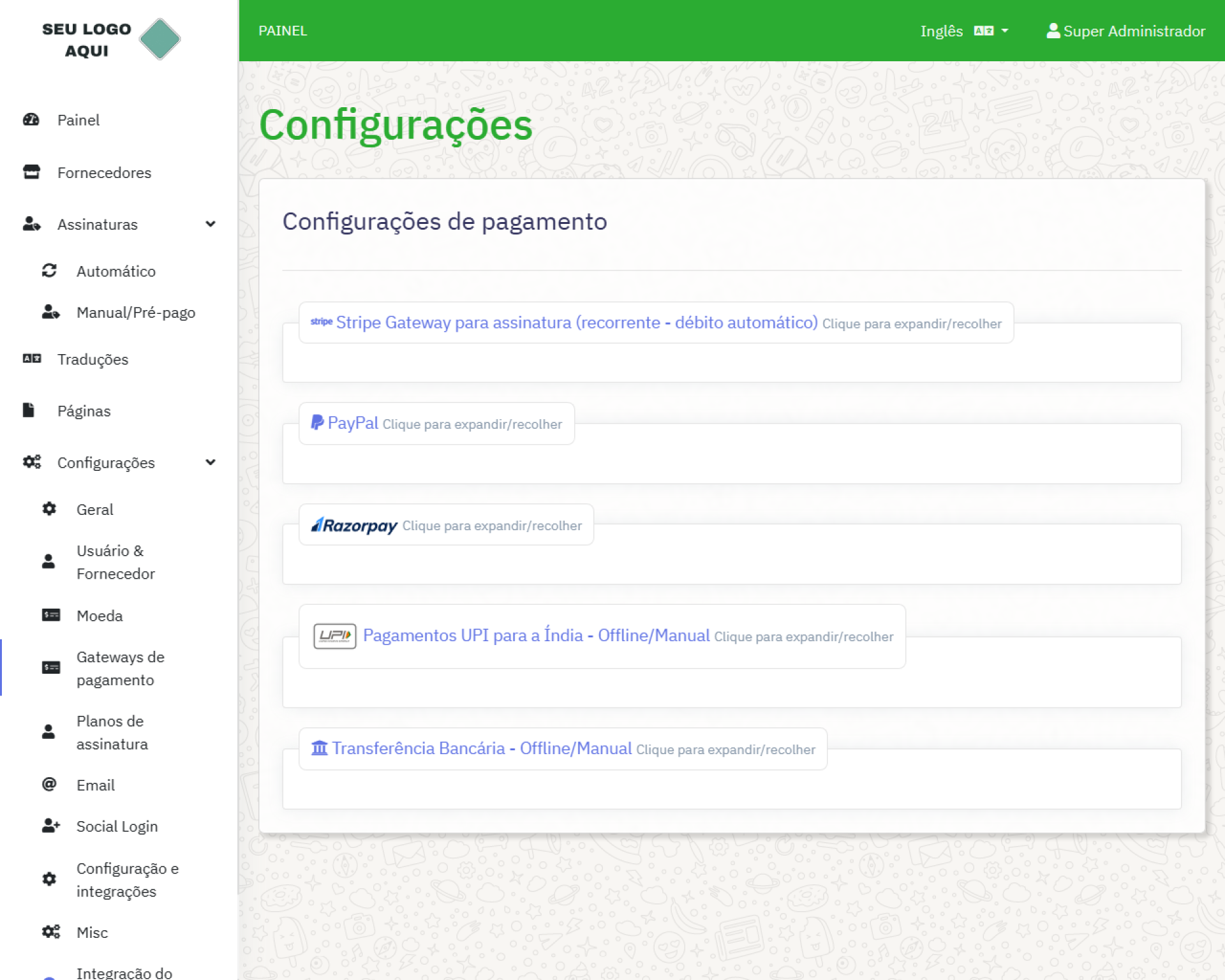 Mensagens de mídia (imagem, vídeo, documento, etc.) para resposta do bot