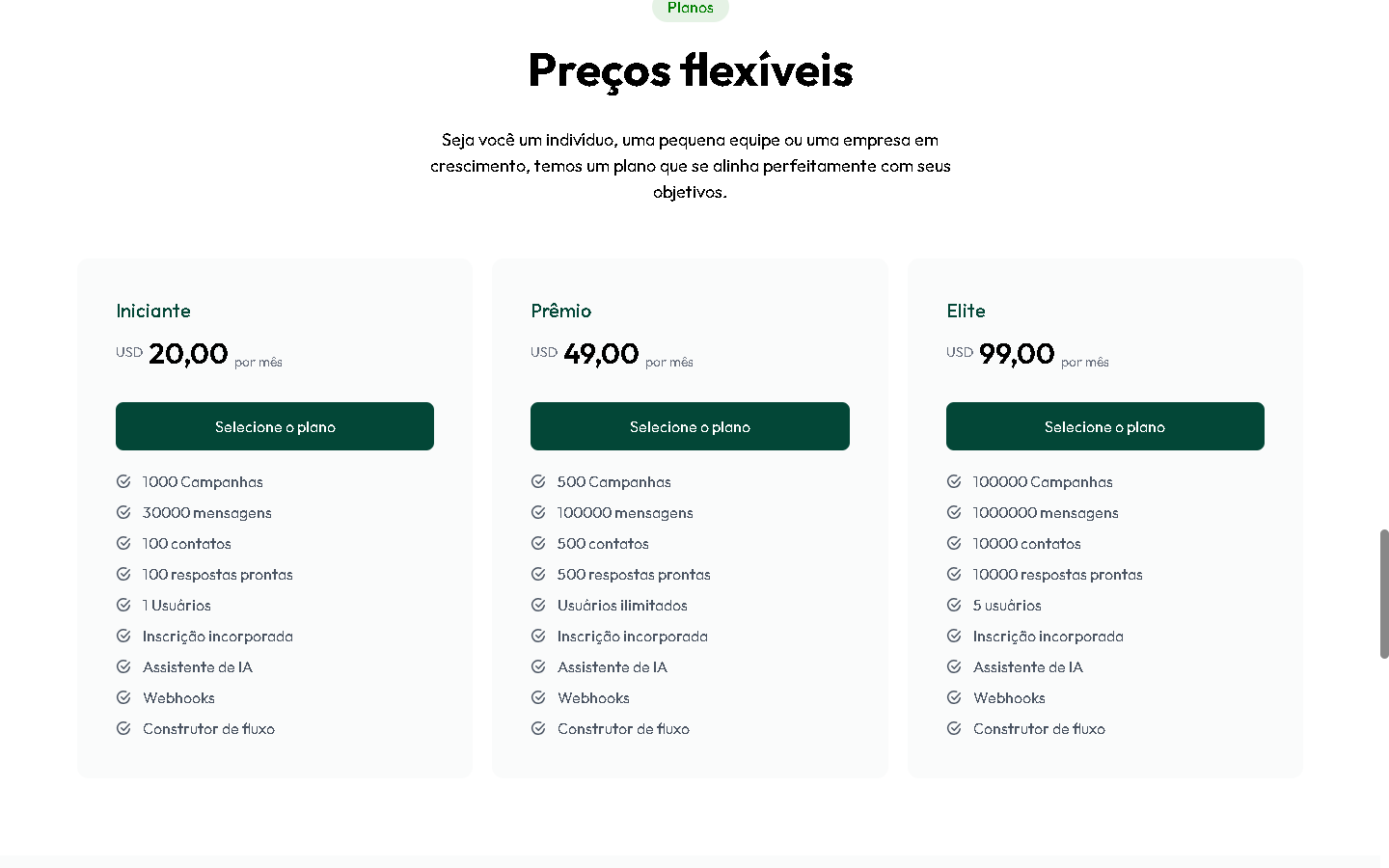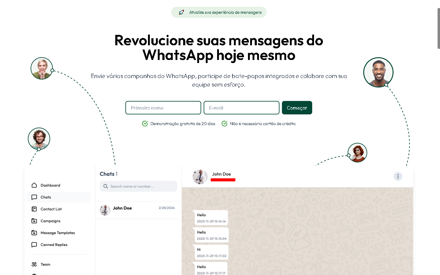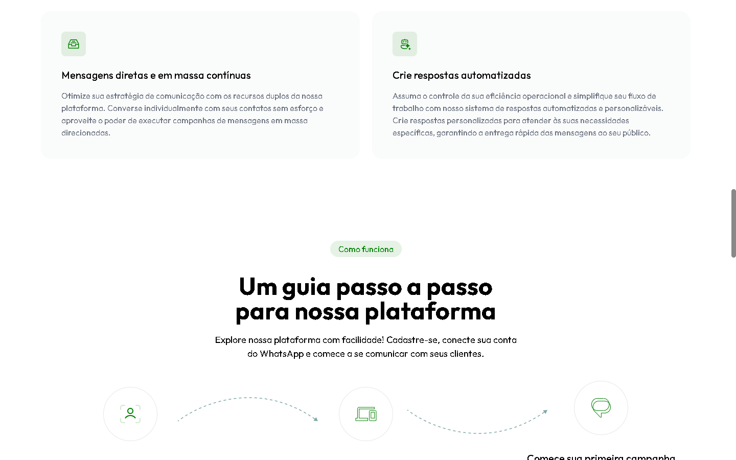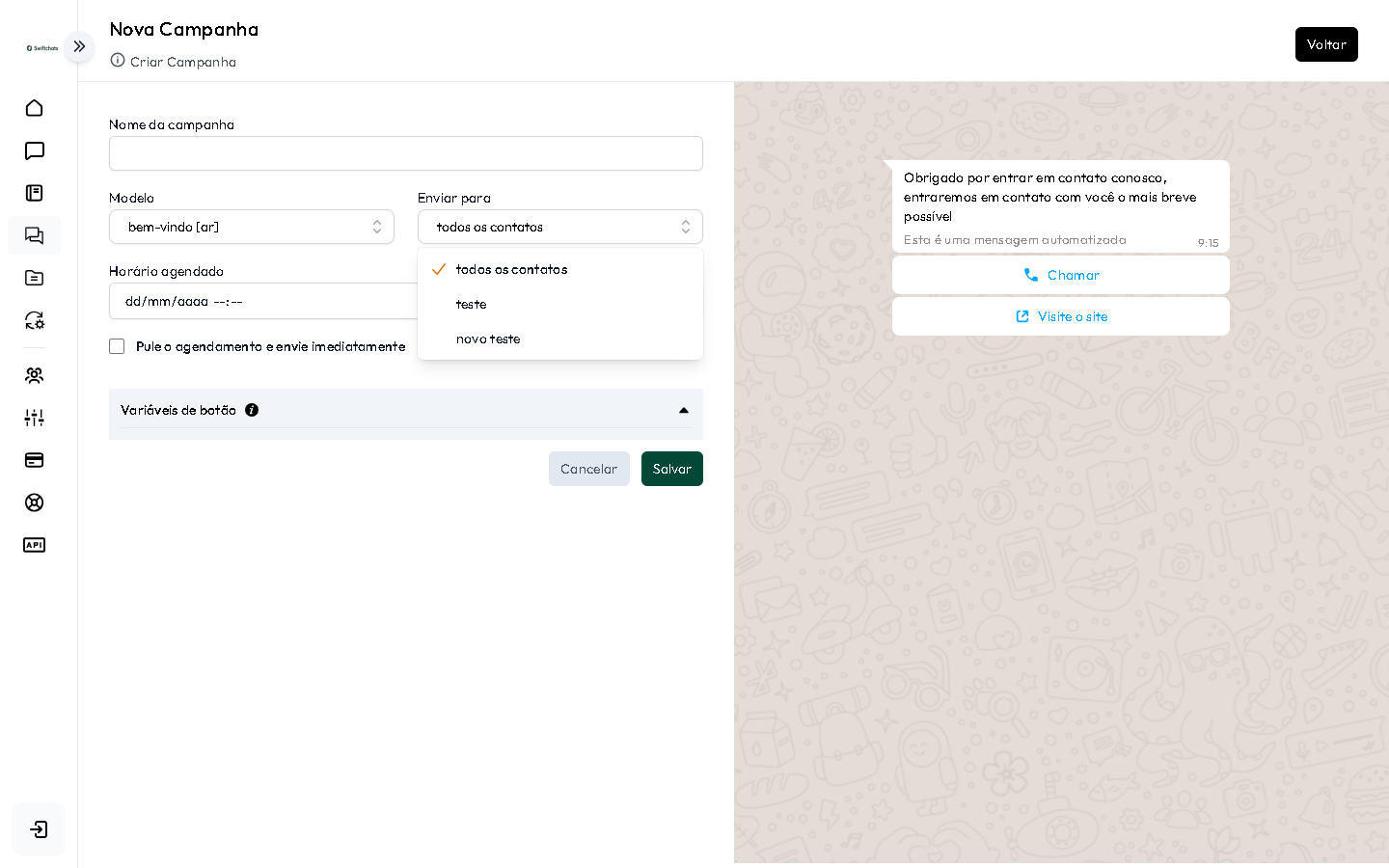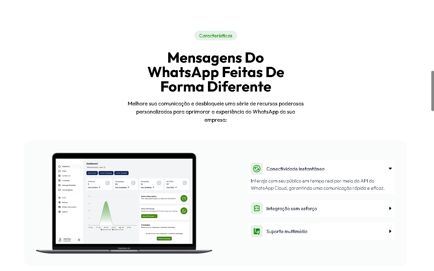 Campanhas de mensagens: envie campanhas de mensagens em massa para seus contatos de acordo com sua programação.