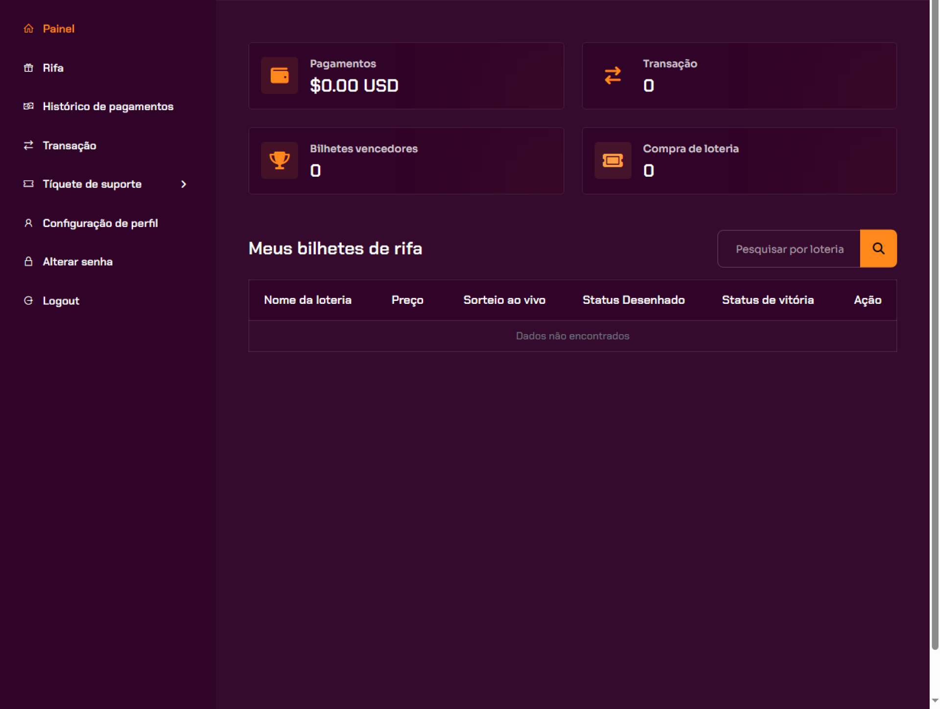 - Registros de bilhetes de sorteios comprados.