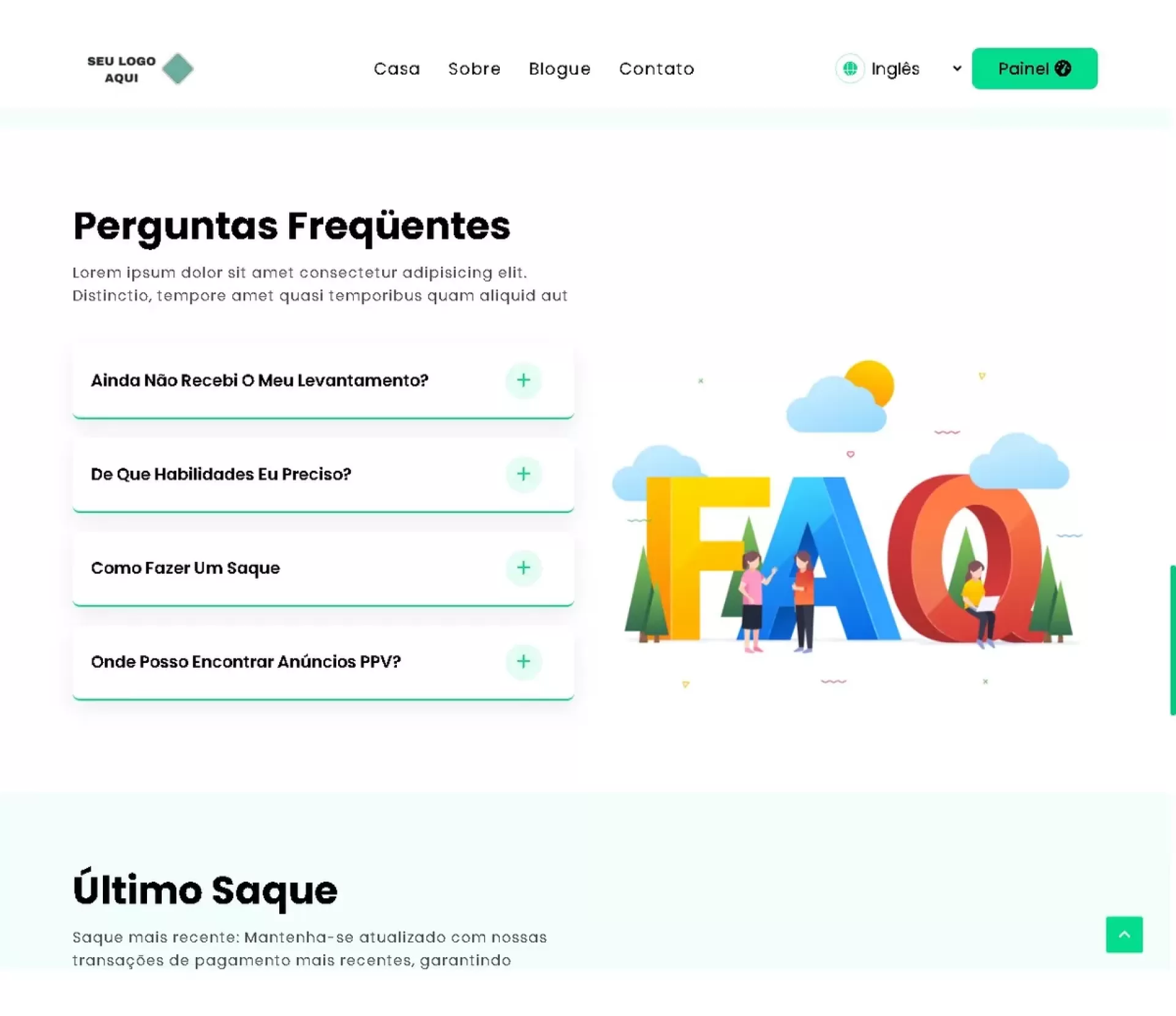 – Configurações de saque.