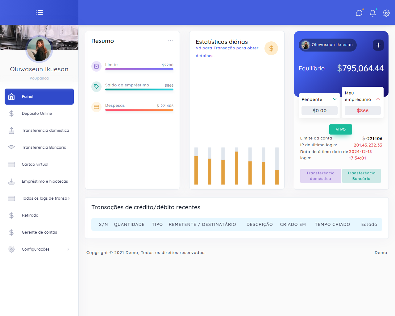 Script de banco on-line com SMS e código de custo de transferência, FMI e código tributário. Seu código-fonte foi desenvolvido em PHP, HTML, JavaScript e banco de dados MySQL.