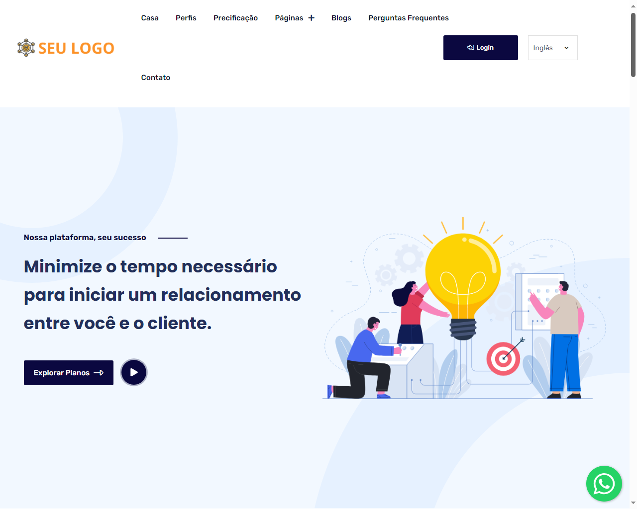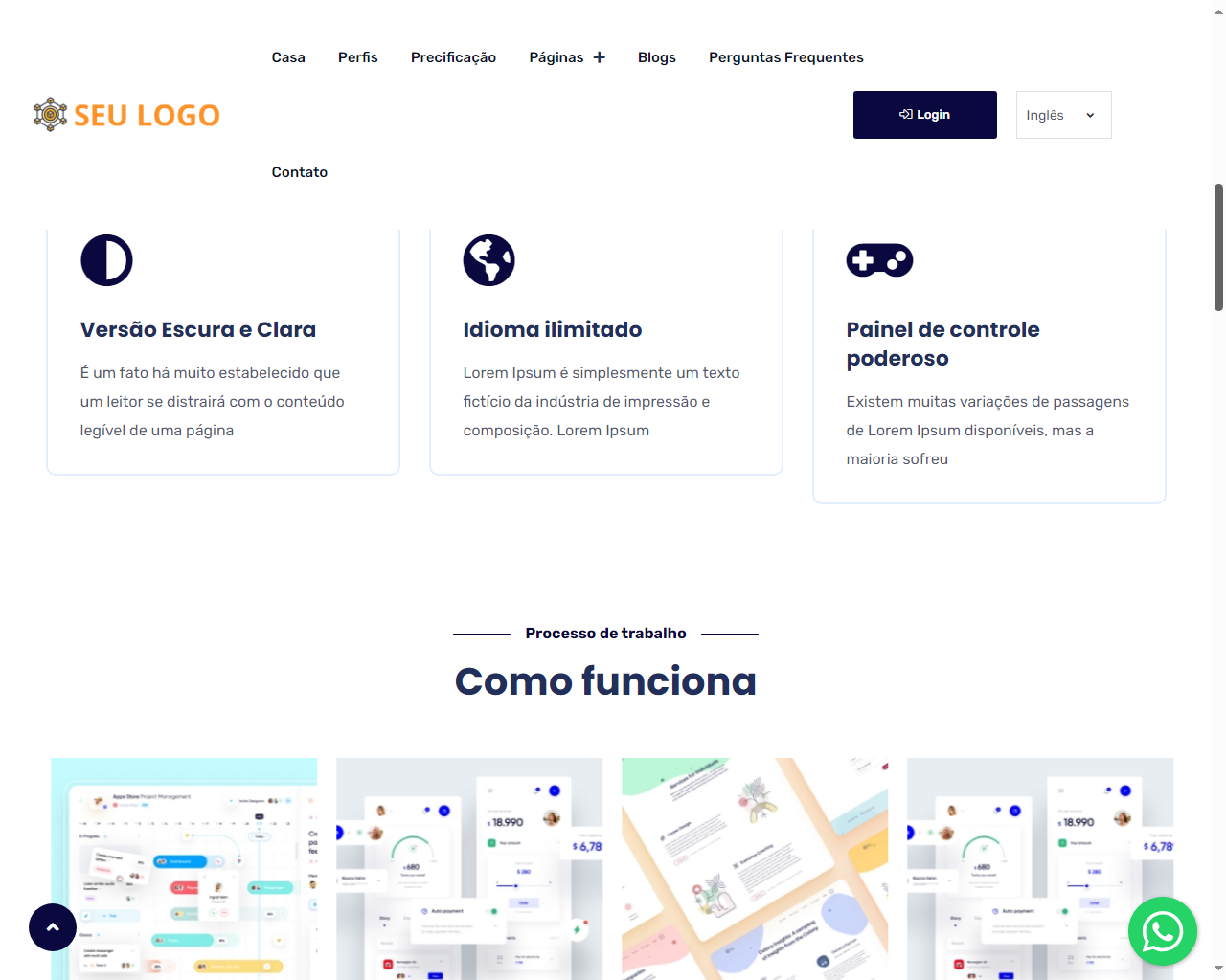 - Personalização do layout com pré-carregadores, logotipo, favicon e configurações de SEO.