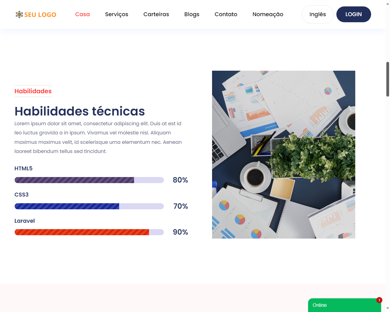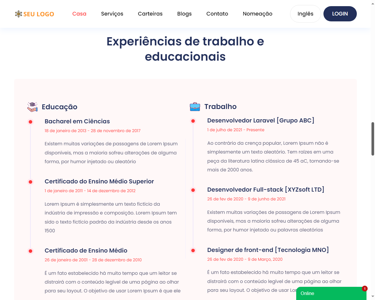 - Carregar conteúdos, como serviços, blogs e portfólios.