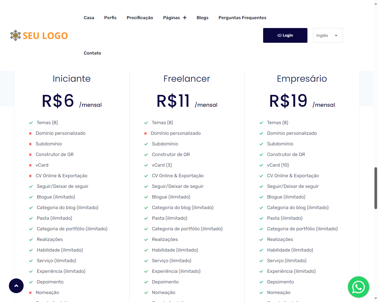 - Controle de limites para vCards, postagens de blogs, portfólios, serviços, habilidades, experiências de trabalho e educação, idiomas.