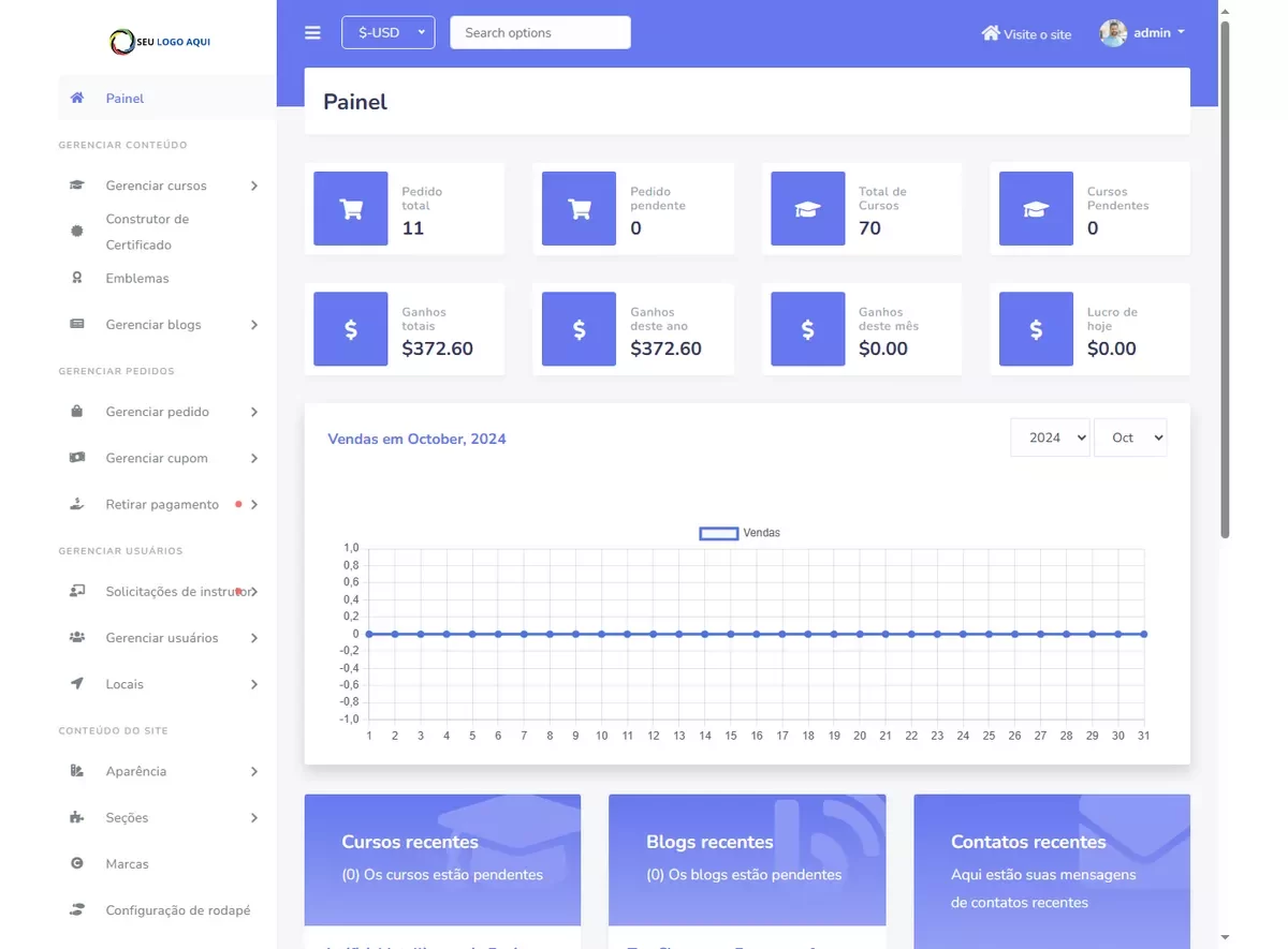 do instrutor Login do painel do instrutor: instructor@gmail.com | 1234