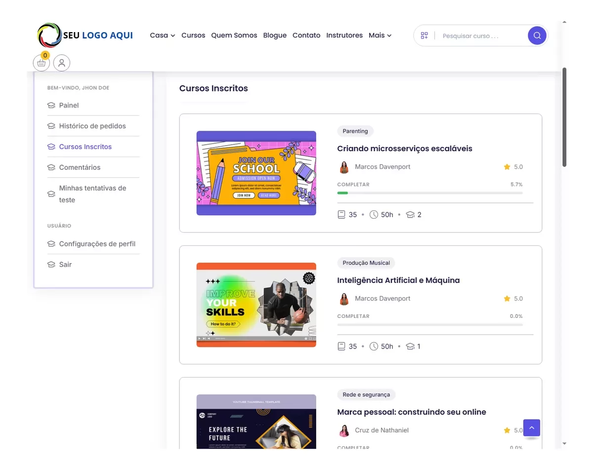 do aluno Login do painel do aluno: student@gmail.com | 1234