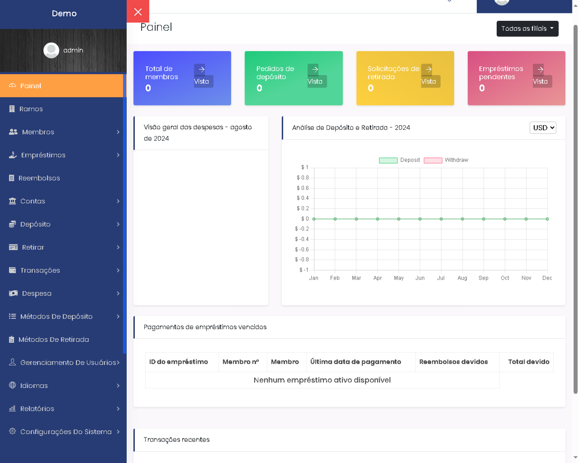 Login de administrador de demonstração