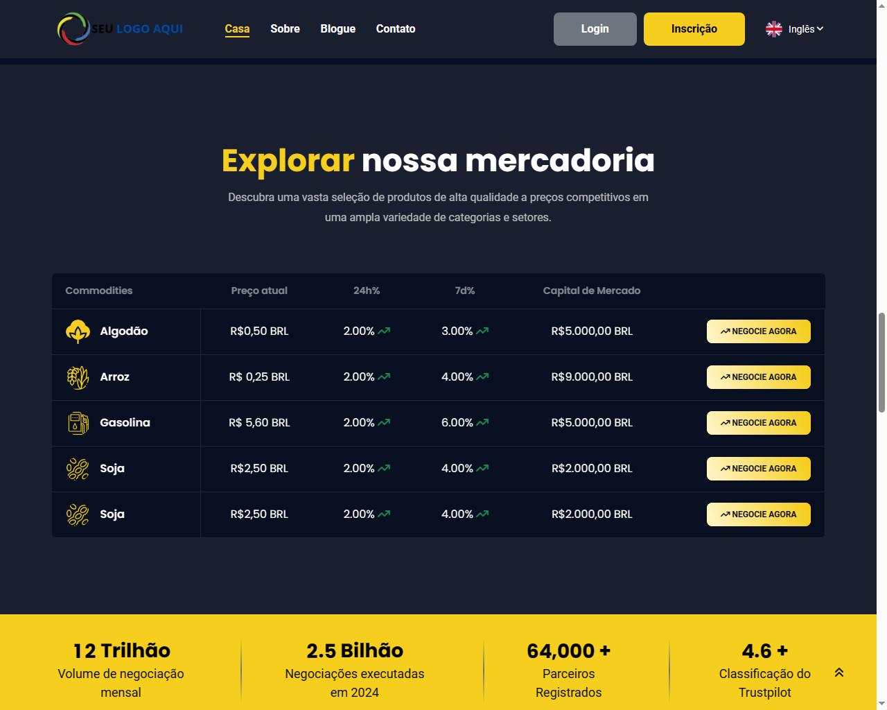 Plataforma de negociação de ponta para negócios de negociação perfeitos. Participe do painel de administração dinâmico, simplifique o comércio online e desfrute de transações seguras. Conecte-se sem esforço com o login social e escolha várias opções de pagamento. Junte-se a nós para uma experiência digital mais inteligente, segura e envolvente.