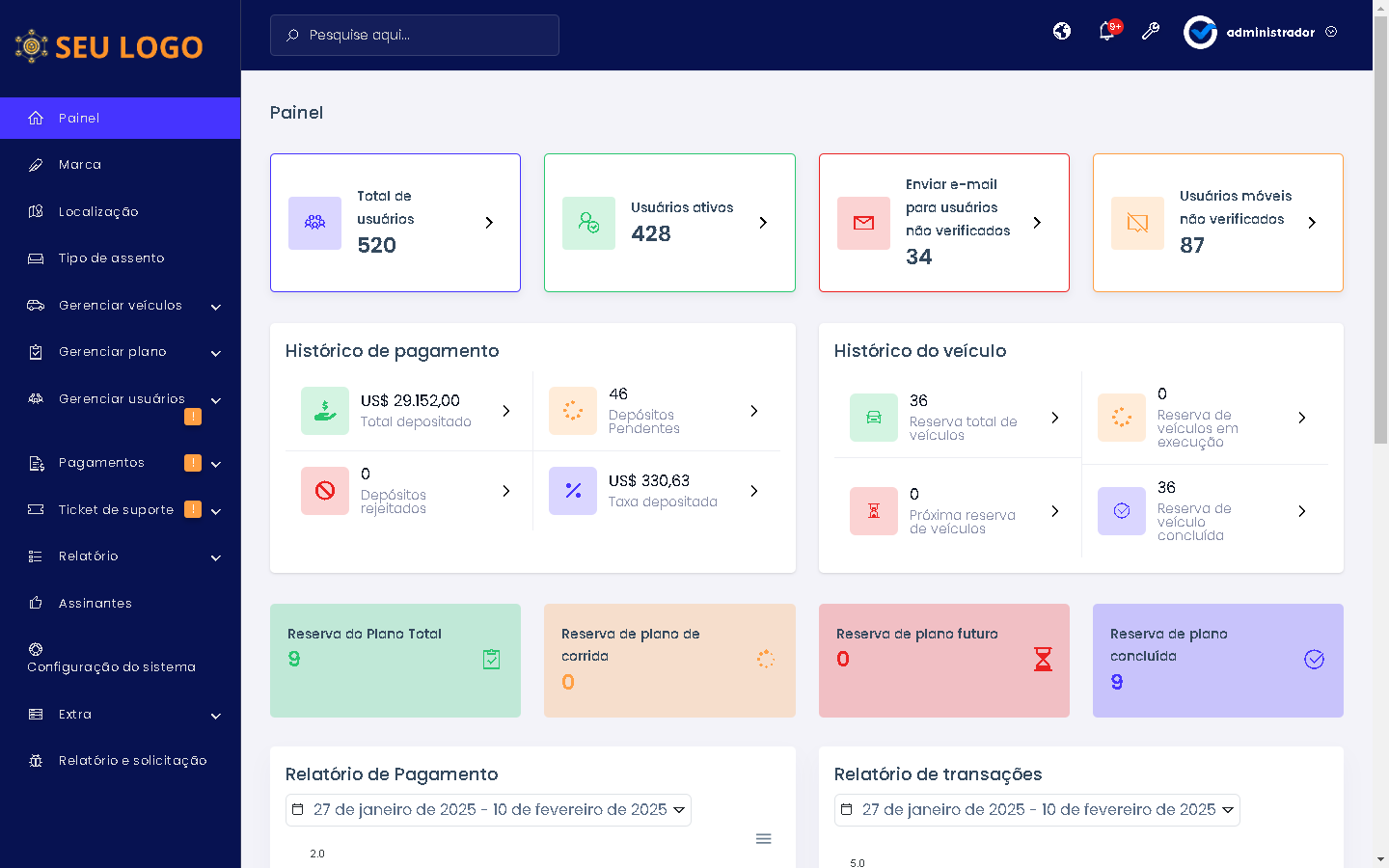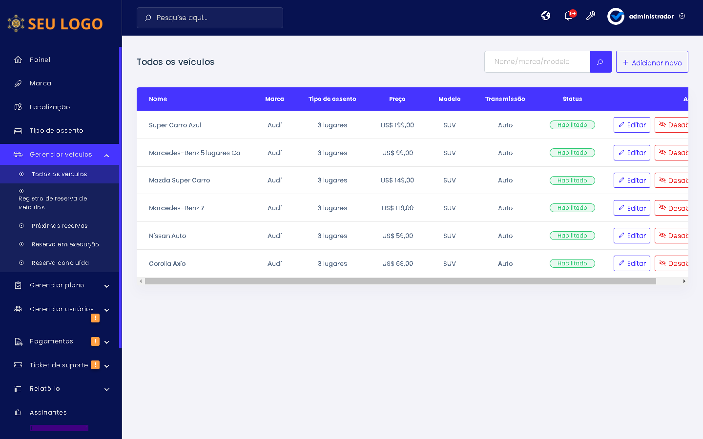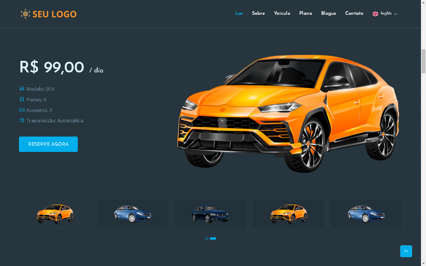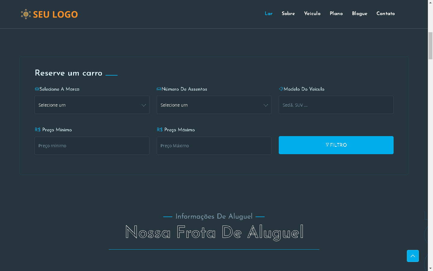 O site ostenta um design limpo e simplificado, facilitando a busca e reserva do veículo desejado pelos usuários sem esforço. Ele oferece suporte a listagens para todos os tipos de veículos, incluindo carros, ônibus, caminhões