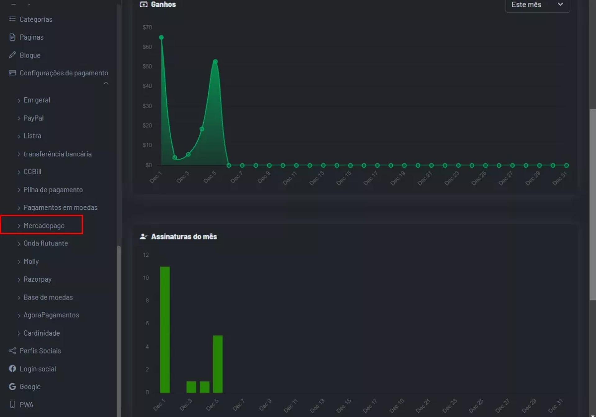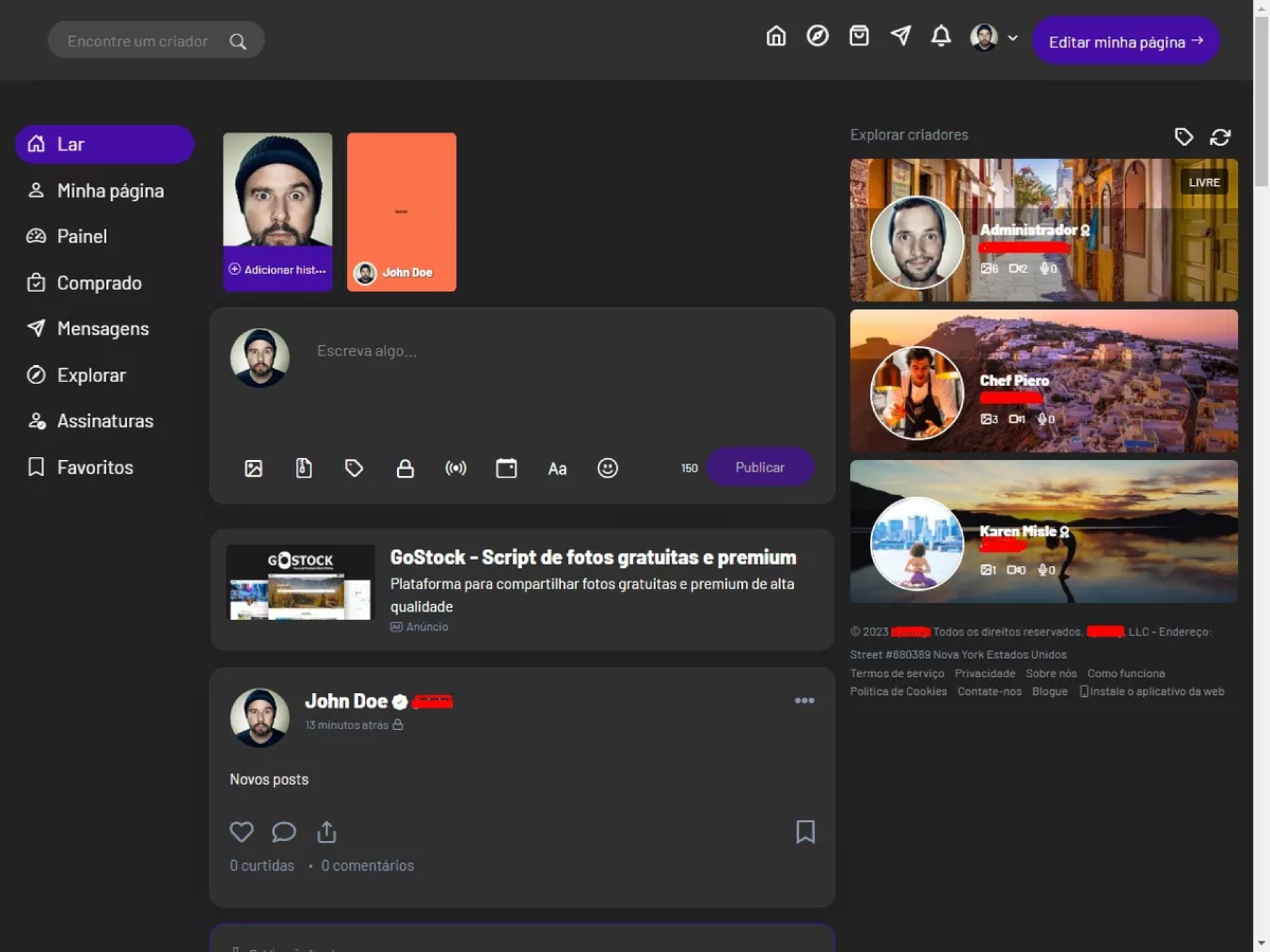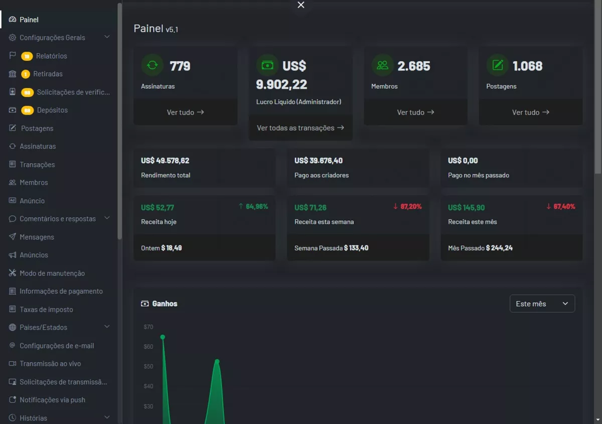 - Notificações por e-mail (novo assinante, dicas, PPV)
