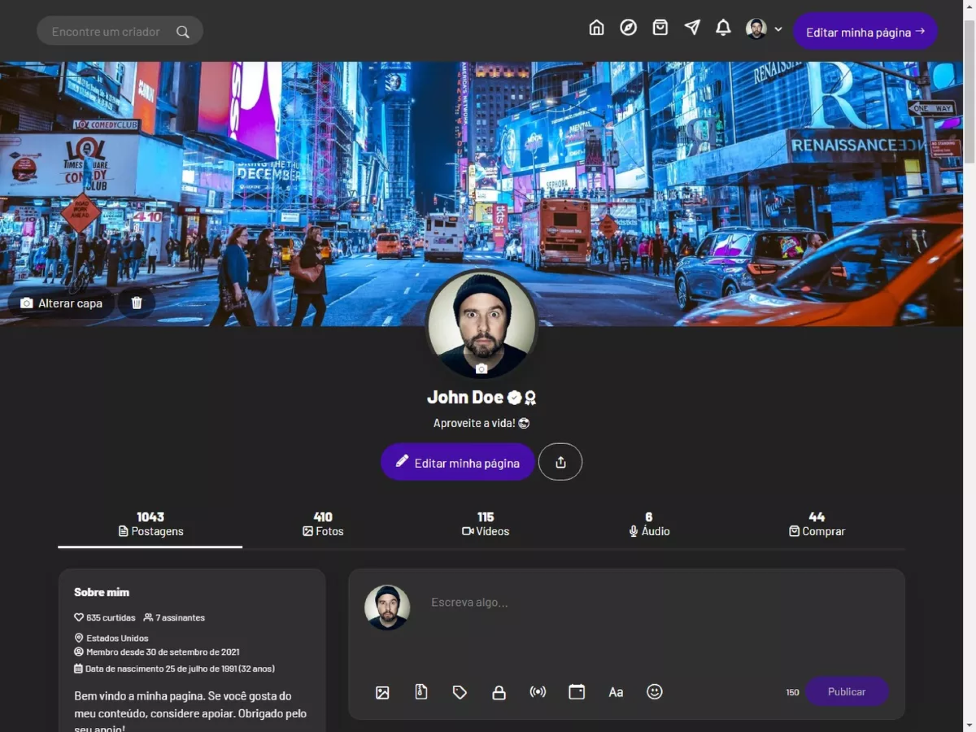 - Os criadores podem alterar seu nome, nome de usuário e senha