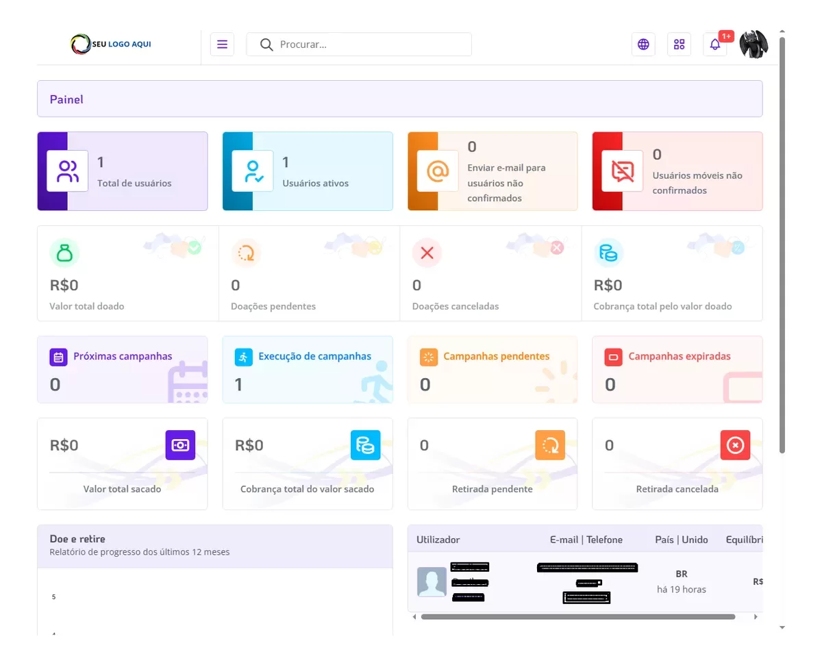 - Capacidade de criar e gerenciar campanhas de arrecadação de fundos.