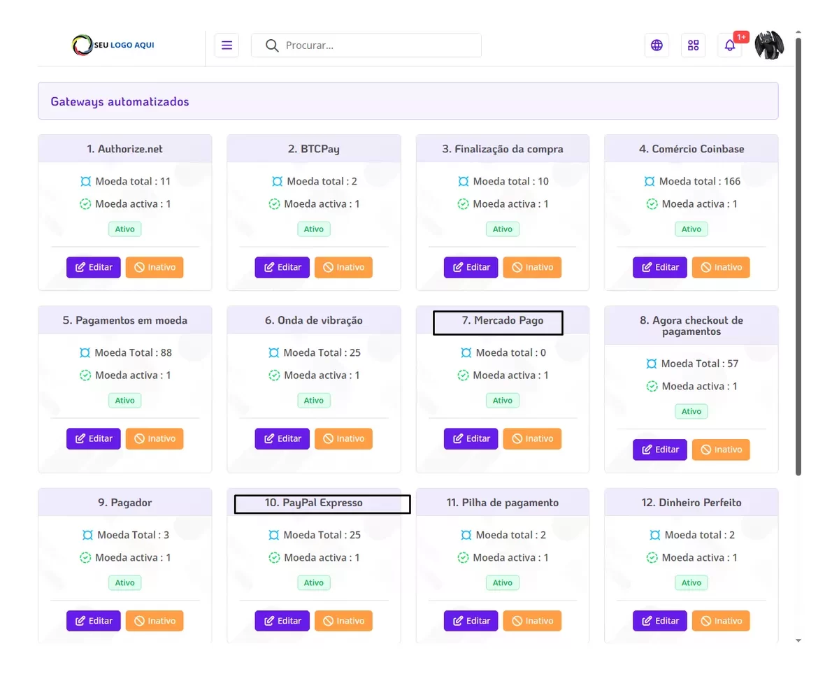 - Gerenciador de gateway de pagamento.