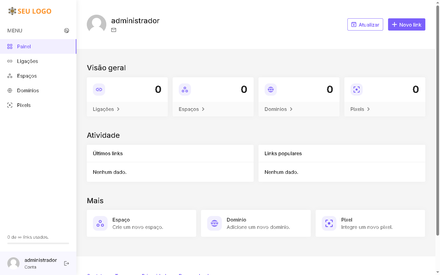 PAINEL – Obtenha a visão geral da conta rapidamente. Gerencie rapidamente seus links mais recentes ou populares.