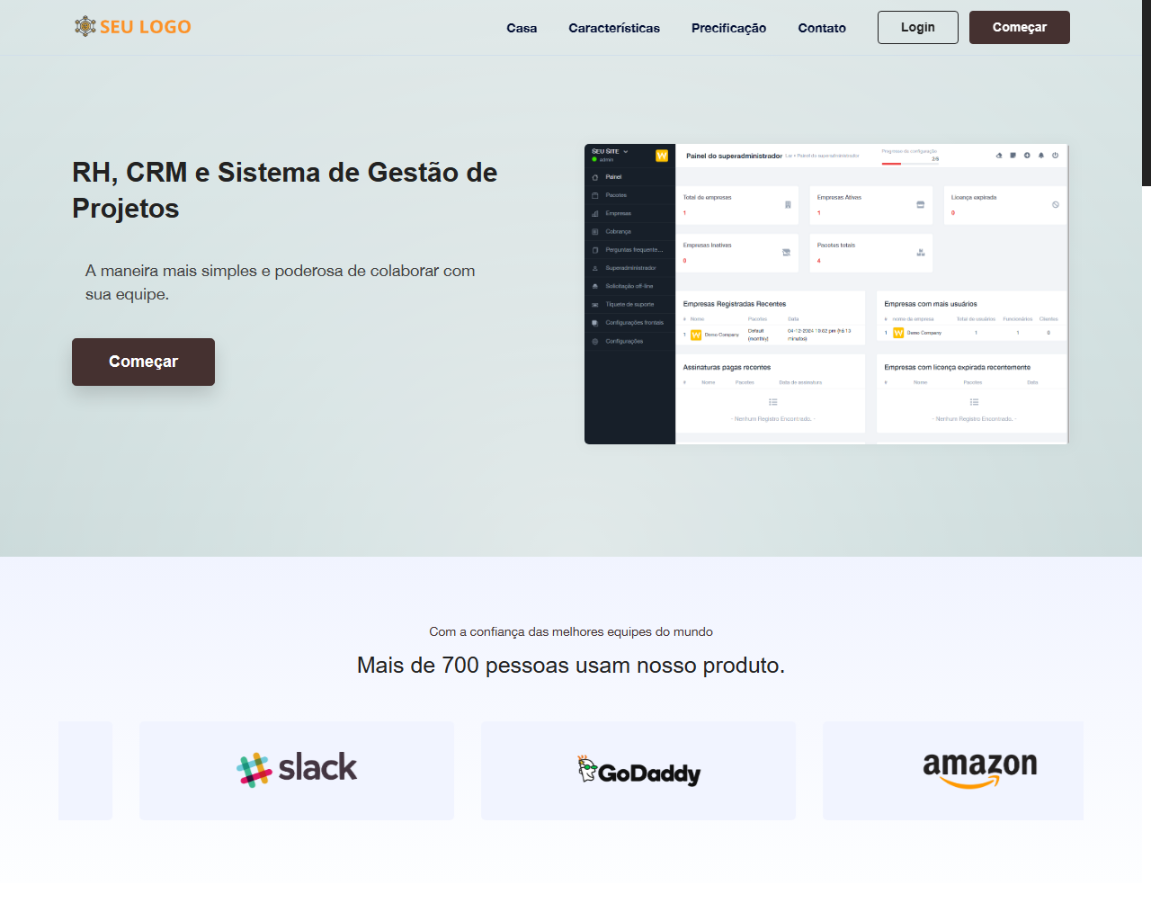 - Crie projetos, adicione membros do projeto e acompanhe o progresso, despesas, ganhos, registros de tempo, tarefas e marcos