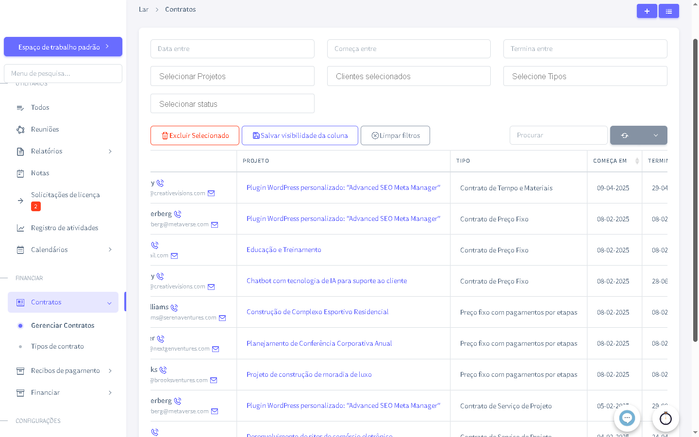 Replique projetos, tarefas, reuniões, contratos e contracheques com facilidade.