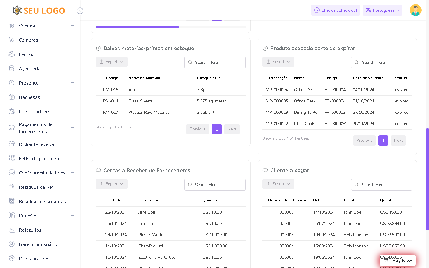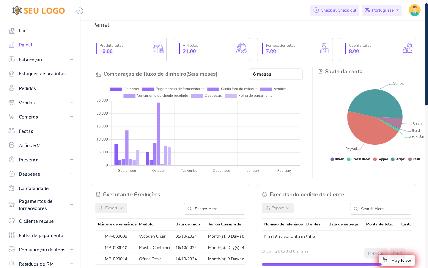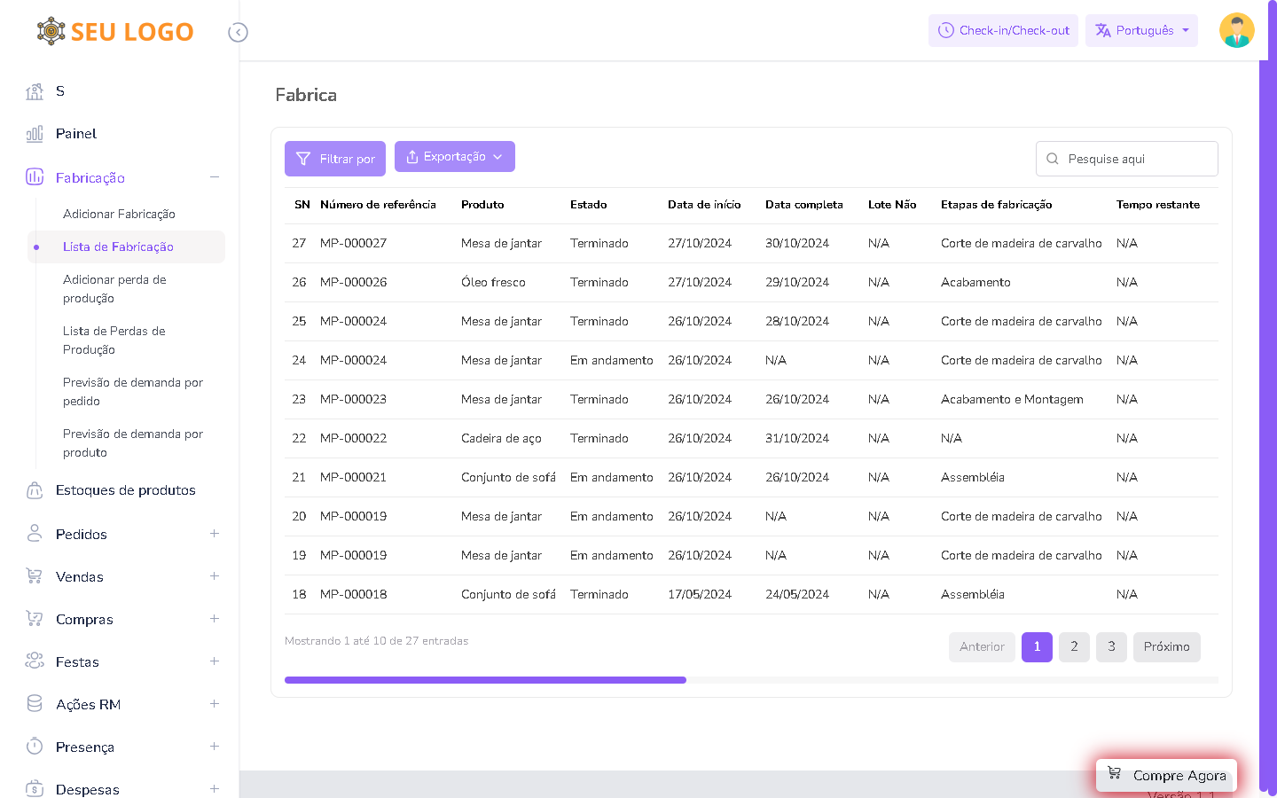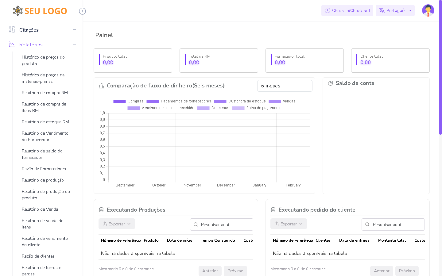 Estoque atual e estoque flutuante (monitoramento de matérias-primas atribuídas à produção em andamento)