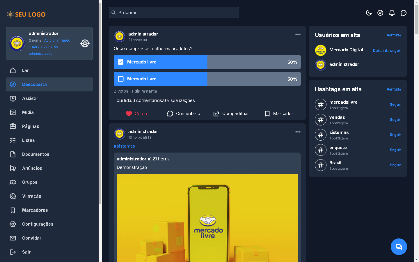 - Denunciar: permite que seus membros denunciem postagens, perfis etc.
